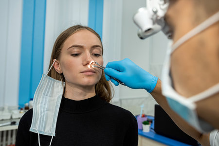 Rhinoplasty is reshaping nose surgery for change appearance of the nose and improve breathing. Consultation with ENT before rhinoplasty plastic surgery to change nose shape and improve breathing