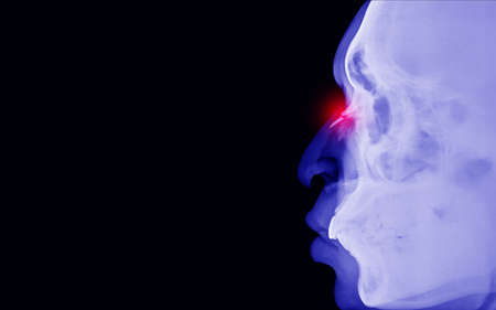 X-ray of an adult victim patient with broken nasal bones after an accident on red point Medical image concept