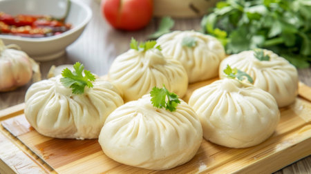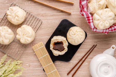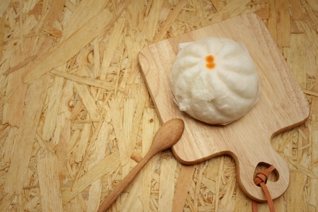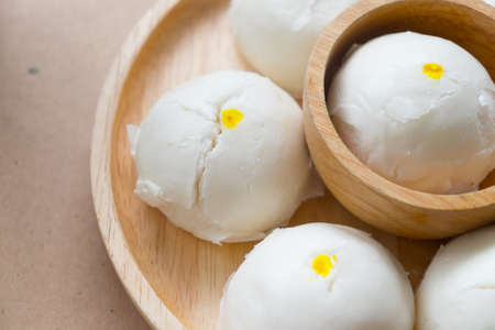 stuffed steamed bun on wood plate - Chinese food style
