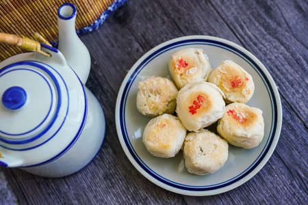 Famous Malaysian food - Seremban Siew pau. It is a type of baked bun with flaky pastry bun and meat (usually pork) filling.