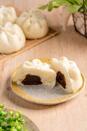 Bakpao, yeast-leavened filled bun in various Chinese cuisines, filling with chocolate