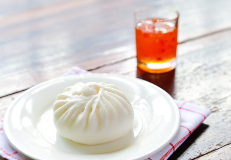 steamed dumpling - chinese bun on wood background.