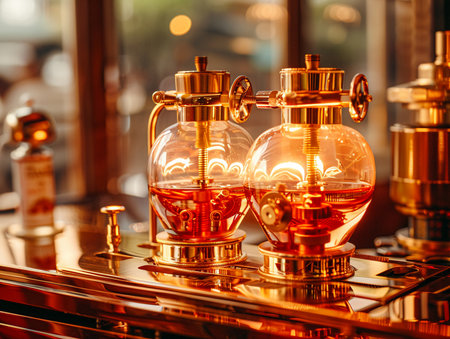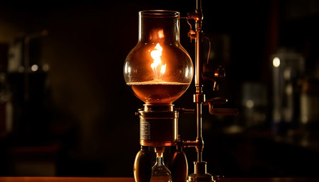 Brewing coffee with a siphon in a cozy cafe during the morning