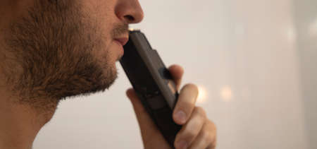 trimmer shaving process soft focus close male portrait of skin and stubble