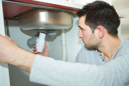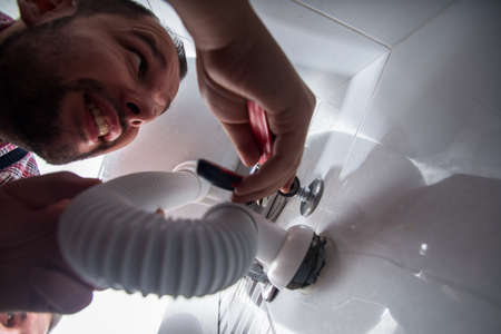 Handyman repairing the bathroom sink