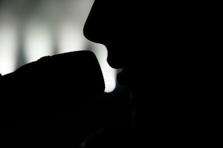 Low key image of a bearded man drinking coffee