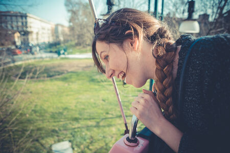 young beautiful blonde hipster woman outdoors