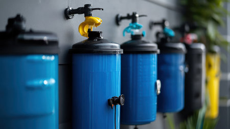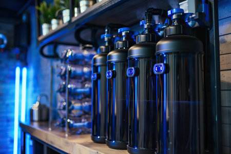 Water purification filter equipment in plant workshop.