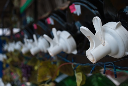Plastic bottles for liquid.
