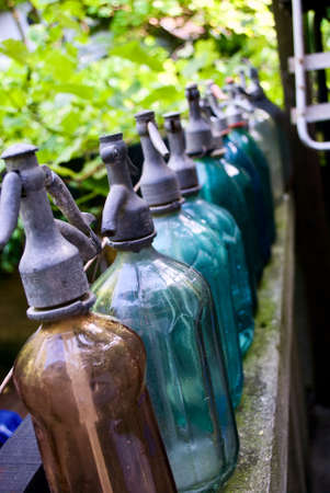 Vintage glass soda bottles with pressure valve