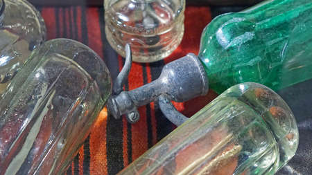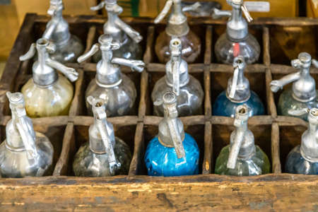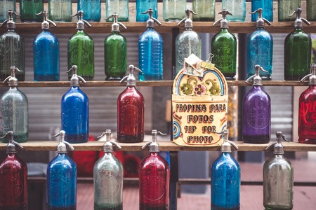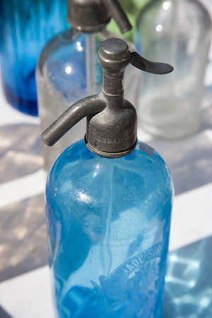 Close-up on an antique seltzer bottels in SanTelmo market in Buenos Aires Argentina