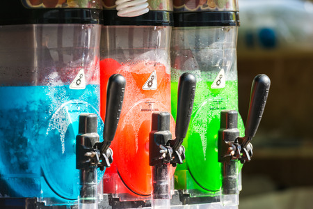 Close up of slush machine. Slushy ice made colorful drink refreshing during summer