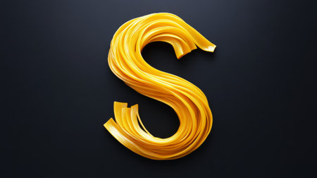 Letter s made of yellow pasta on dark background. Creative typography and culinary art concept