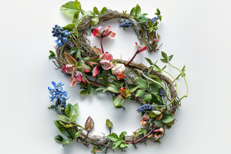 A creatively designed letter R formed from a stunning arrangement of colorful flowers, showcasing intricate floral details against a white background.