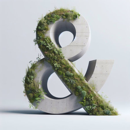 Ampersand mark shape 3D Lettering That Blends Concrete With Nature. AI generated illustration