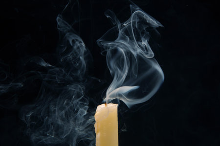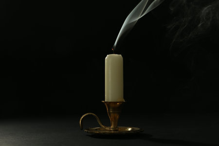 Smoke from an extinguished candle on a dark background. The concept of spirituality and the end of life.