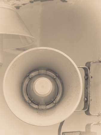 Old loud speaker on the white wall on ferry boat