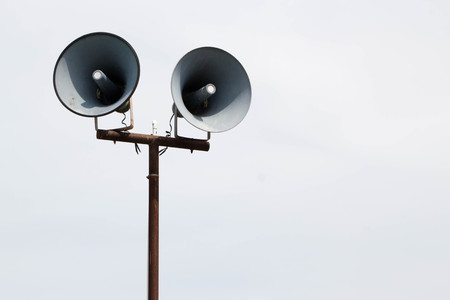 horn speaker on pole with blue sky background