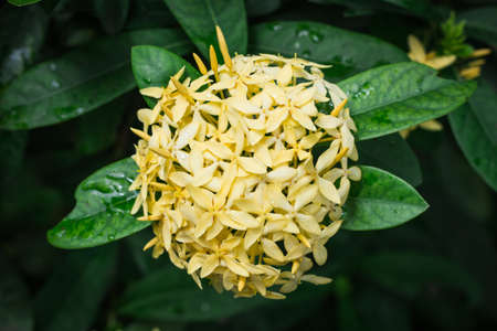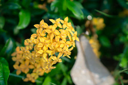 Little yellow flowers of rubiaceae tree (Jungle geranium ,Ixora coccinea)