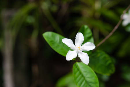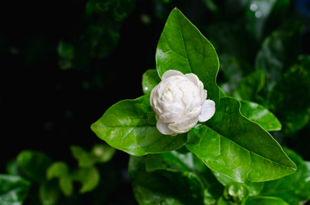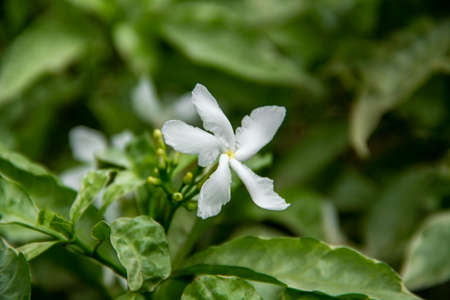 Fresh white Thailand Jasmine flower with its leaves for mother day in Thailand on August.