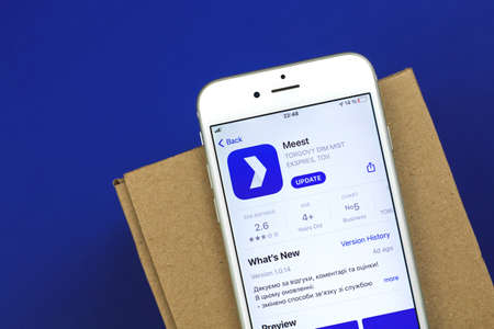 Kharkov, Ukraine - February 28, 2021: Meest Express application on Apple iPhone screen for tracking, shipping and delivery your goods. High quality photo