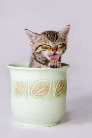 One month old orange kitten stylish in front of a turquoise background, very adorable and cute