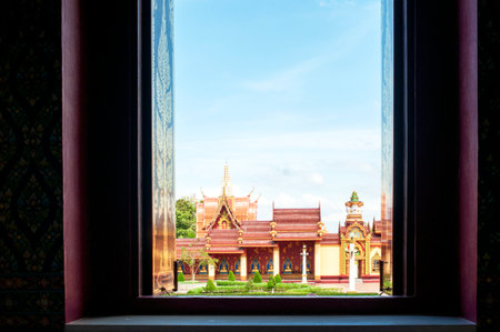 Atmosphere in the temples of Thailand At Temple name is Wat Pipat Mongkol, Thungsaliam, Sukhothai, Thailand in 26 February 2021.