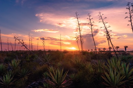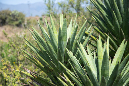Wild maguey or agave plants on an organic plantation in the Oaxaca Valley in Mexico.