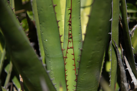 Detail and texture of a beautiful backlighted cactus or aloe leaf