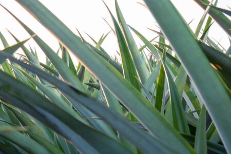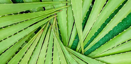 Amazing leaves of yucca plant. Beautiful green texture in the form of divergent rays.