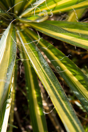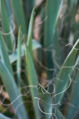 Foliage Leaves of Agave angustifolia 'Milky Way', Thread Leaf Agave Plant as Natural Abstract Pattern Background