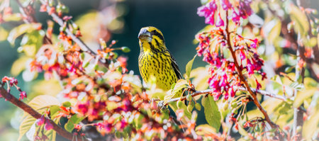 European serin (Serinus serinus) in the garden