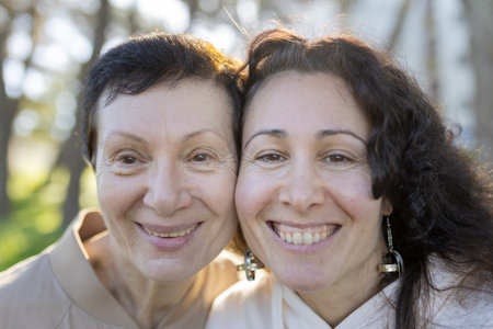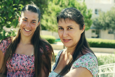 Happy mother and daughter smiling together outdoors
