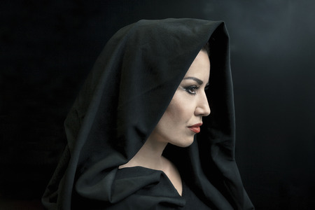 Portrait of a woman in a black veil on a black background