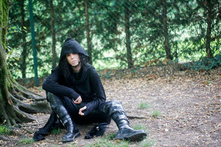 Shot of a gothic woman in a forest. Fashion.