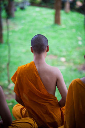 Buddhist monk vipassana meditate to calm the mind in Thailand.