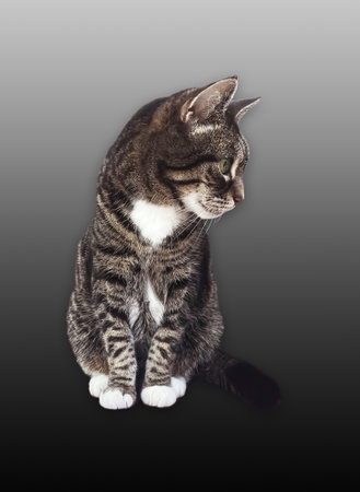 Beautiful female tabby cat, lovely adorable pet, studio portrait