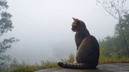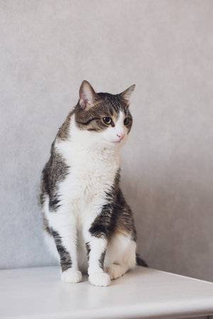 A Charming Domestic Cat is Sitting Gracefully Against a Soft Background and Looking Cute