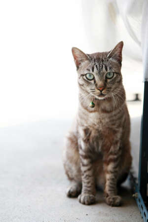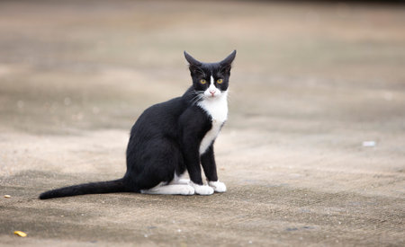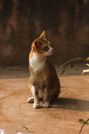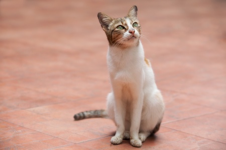 Cute cat sitting on the floor, Thailand. Selective focus.