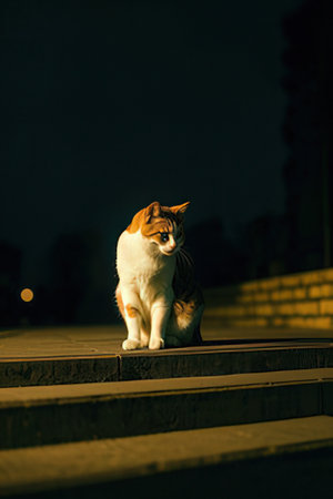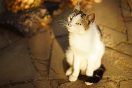 Alone Stray cat, outdoor. Pet animal; stray cat.