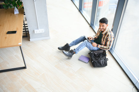 Happy indian male student at the university.