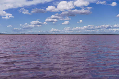Exotic pink salt lake and blue sky with clouds. High quality photo