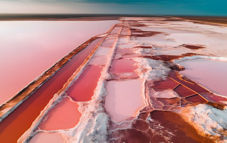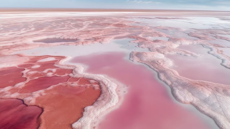 Generative AI : Aerial view of salt beds at pink lake in Yallabatharra Australia