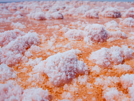 Beautiful crystals of pink salt on marshes