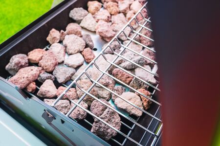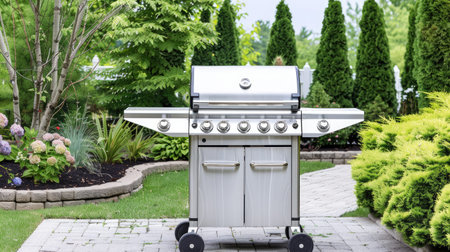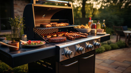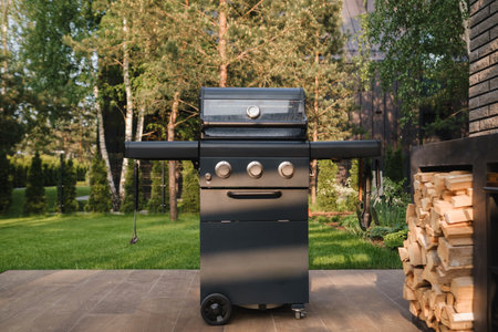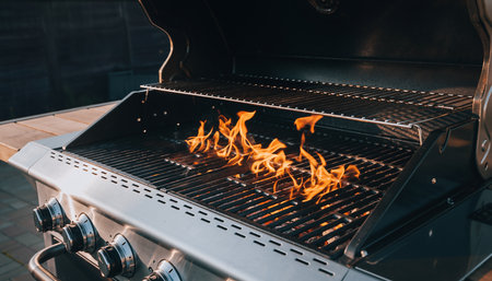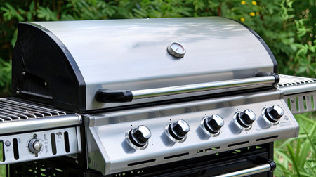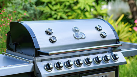 Close up of outdoor gas grill in the Summer.