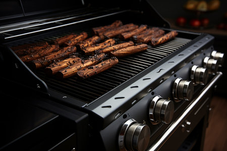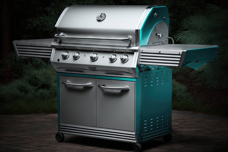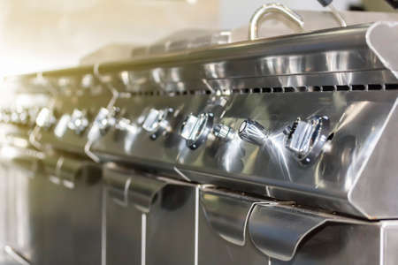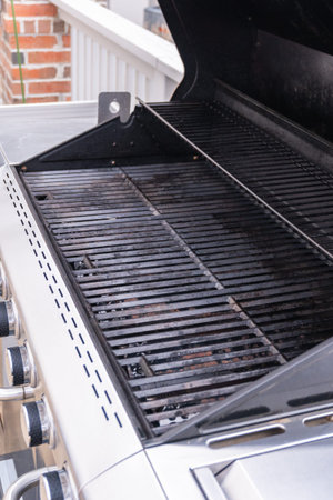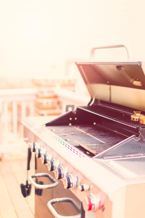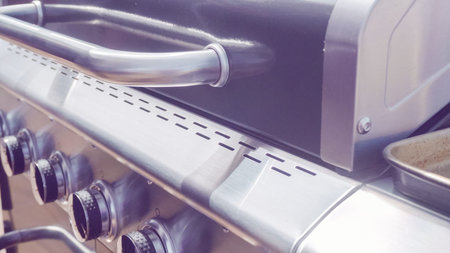Close up of outdoor gas grill.