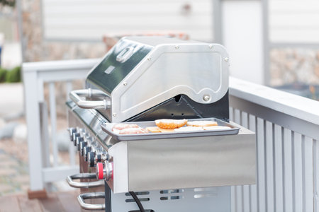 Step by step. Outdoor gas grill on back patio in the Summer.