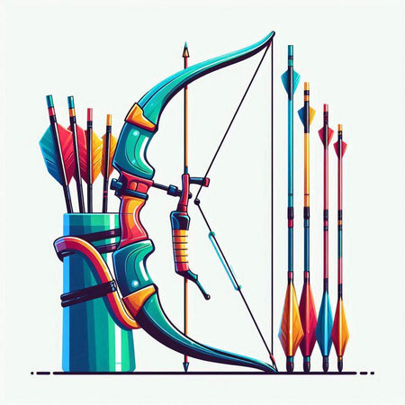 A colorful illustration of a bow and arrow on a pink background, perfect for various design projects.