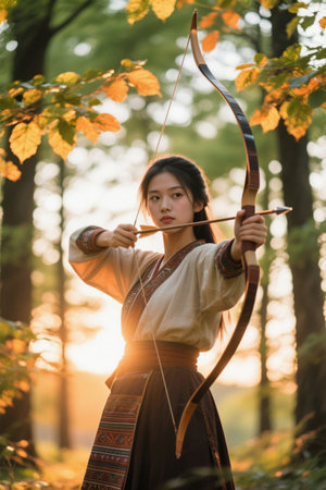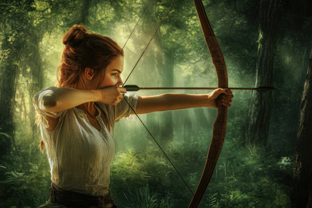 Dynamic archery shot, highlighting athleticism and motion, ideal for summer olympics concept.