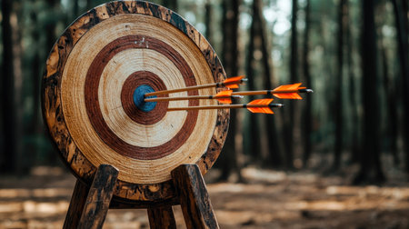 Colorful arrows with red feathers lie near a target amidst the excitement of archery practice.